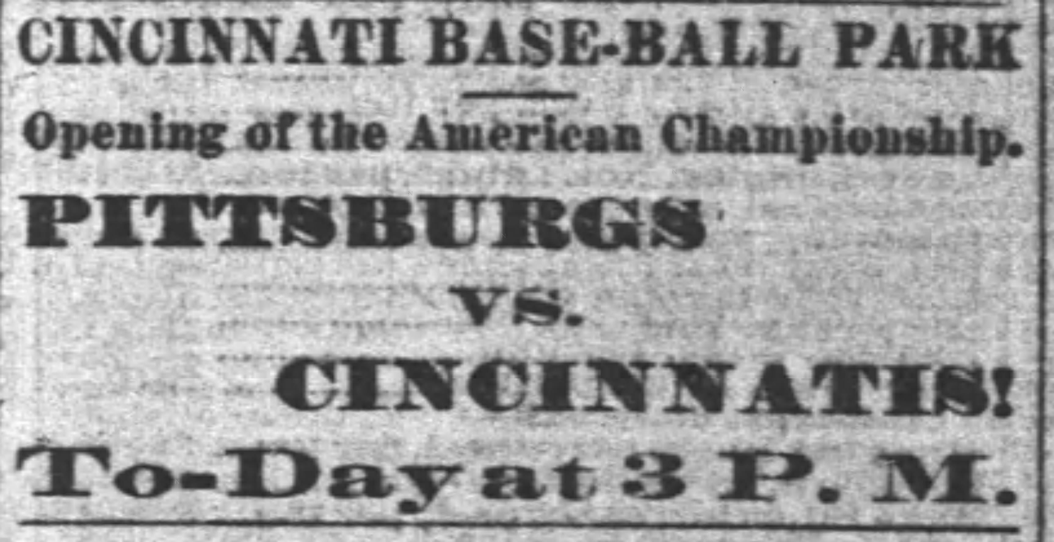 This was the first phrase written on page five of the May 3, 1882 Wednesday morning Cincinnati Enquirer, describing the 10-9 opening day loss to Pittsburgh in front of 1,500 fans at Bank Street Grounds.
